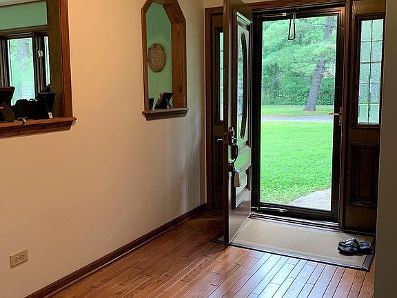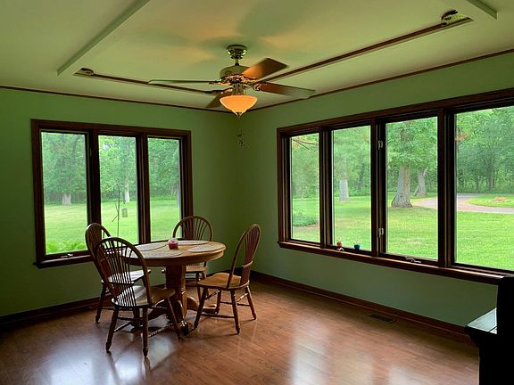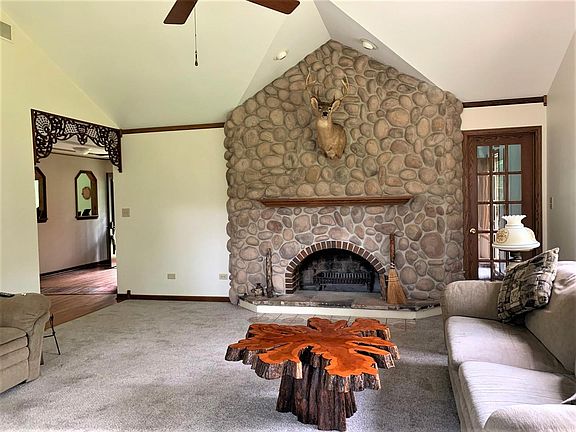 Fantastic 3 BR/2 BA home is tucked away at the end of a private drive on more than 2 acres of wooded land. You'll fall in love from the hardwood entrance and custom trim including oak crown molding to the living room's stone fireplace, spacious eat-in kitchen, large dining room and so much more. New carpet. All 3 BR offer large walk-in closets. Each window offers sensational views of nature. You'll love the 13 x 16 covered patio leading to a 13 x 13 octagonal deck. And don't forget the gazebo for outdoor entertaining. The 30 x 40 heated pole barn is a workshop dream and has a 20 x 40 loft for more work or storage space. The choices are yours...but don't delay...