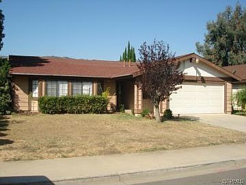 Single Story in Lake Elsinore...3 bedrooms + 2 bathrooms...approx. 1344sq.ft. of living space on approx. 6098sq.ft. lot...2 car attached garage...large living room with fireplace...concrete patio and grassy backyard...white appliances in kitchen.