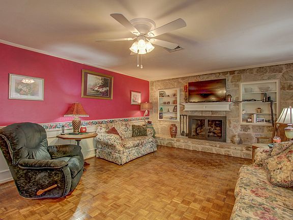 This great open floor plan, three bedroom home has beautiful parquet floors, a spacious kitchen, large living space with a gorgeous stone fireplace. This tree lined street is beautiful in the fall and provides great shade in the summer. This home and neighborhood has tons of charm.