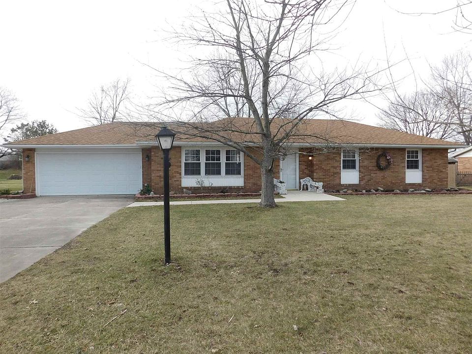 All brick ranch with attached 2 car heated garage. 3 bedroom's, two full baths. On half an acre in Wes-Del schools. Nicely landscaped with concrete driveway and large 2 car detached garage built in 2013 with opener. Living room with nice picture window and crown molding. Large dining room with built-in book shelves. Patio doors leading to covered back porch. Shade trees. Kitchen with new flooring, cabinets, sink, faucet and lighting in 2016. Refrigerator, microwave, dishwasher, stove, washer and dryer all remain. Water softener. Master suite bath has new floor, stand up shower, sink, toilet and lighting. Seamless gutters & Soffit/ Facia installed. LeafGuard installed on gutters. Sewer line from house to road replaced in 2018. Garage door to house replaced in 2019 . Central air within the last 5 years.