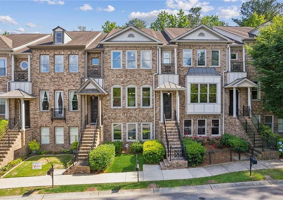Discover this meticulously maintained 3-story townhouse in a private gated community with an unbeatable location near Halcyon, Avalon, Downtown Alpharetta, and just minutes from GA 400. This home features 3 bedrooms and 3.5 bathrooms. The rustic brick front and stunning front door welcome you into a separate dining area flooded with natural light from oversized windows. Newly refinished hardwood floors on the main level and fresh paint throughout enhance the home's appeal. The large kitchen boasts granite countertops and white cabinets, opening to a family room with a fireplace and a deck overlooking a serene wooded greenspace. Relax and enjoy nature right from your porch. Each of the 3 bedrooms has an en-suite bath, with a powder room on the main level. The master bedroom offers a sitting area with a fireplace, while the second bedroom on the upper level serves as an additional master, featuring 2 closets and a view of the front of the property. The lower level is ideal as a workspace or guest bedroom, complete with oversized windows and access to the double garage and rear entry driveway with space for 2 more cars. Community amenities include a dog park, pool, and gated entry. This fantastic location offers a move-in-ready home with a quick close option.