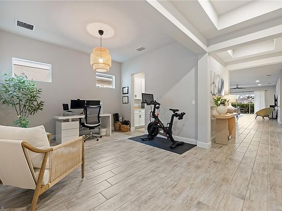 Incomparable living awaits in this optionally furnished 3-bedroom plus den/office, 2 full and 1 half bath residence spanning 2,422 square feet in the private, gated community of Compass Landing. Thoughtful upgrades are showcased throughout, beginning with a spacious open-concept great room and formal dining area designed for entertaining. The gourmet kitchen is a true centerpiece, featuring 42-inch cabinetry, Viatera quartz countertops, matching backsplash, stainless steel Whirlpool appliances, a wine cooler, deep basin sink, under-cabinet lighting, and a generous walk-in pantry. The owner's suite offers a walk-in closet and spa-inspired bath with dual sinks, quartz counters, and a walk-in shower, while designer touches with built-ins, elegant window treatments, upgraded hardware, modern fixtures, and plank tile flooring elevate every space. Outdoor living is equally impressive with an extended screened lanai, and fully fenced yard with Southern Exposure.. Residents enjoy amenities including a clubhouse, pool and spa, fitness center, kids' playground, and a vibrant social calendar highlighted by the annual Christmas Golf Cart Parade and festive Halloween celebrations. Zoned for top-rated Bear Creek Elementary and Gulf Coast High School, the home offers both convenience and community. Its prime North Naples location provides walking distance to Founders Square for dining and entertainment, along with quick access to I-75 for effortless travel. Move-in ready and optionally furnished, this home is available for both annual and seasonal leases, presenting an incredible opportunity to enjoy one of North Naples' most sought-after neighborhoods.
