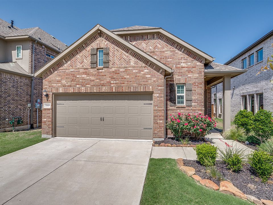 Welcome to this custom built one story home nestled in the resort style community of Light Farms with desirable Prosper ISD, boasting three bedrooms including the master retreat with en suite with dual sinks, garden tub and oversized shower, large walk in closet, two additional bedrooms conveniently located away from the master for privacy next to a full bathroom, gourmet kitchen with stainless steel appliances, gas cooktop, built in oven and microwave, walk in pantry, an abundance of painted cabinets, granite counters, island with split sink, backsplash, open to the dining room and family room with featured fireplace, engineered hardwoods, mud bench for all your storage needs, separate utility with shelves and hanging rail. Outside you will enjoy a covered patio and plenty of room to play and enjoy the summer evenings, 2 car garage finish this home off to perfection.
