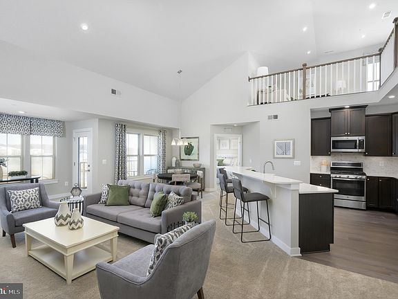 To be built. As soon as you enter the foyer of Ryan Homes’ Chambord, you’ll see how luxury and convenience can converge to create the home you need in the space you want. A large coat closet and storage area give you plenty of space to stow your things. As you walk in, the light and airy Great Room greets you with a bank of windows through the Sunroom, and a sliding glass door to your private balcony or patio. Don’t forget to add the optional fireplace to make your space even cozier! Open to the Great Room over a convenient breakfast bar, the Kitchen features plenty of counter and cabinet space and a large pantry. The Primary Bedroom features two large closets (one of which is a walk-in!). The primary's bath has a double bowl vanity and offers either a tub or shower with seat. Through the foyer is another full bath, laundry area and second bedroom which also boasts a huge closet. The top floor unit comes with a loft for even more living space and grand views of the great room. No matter which options you choose, the Chambord is a flexible floorplan that you’ll love to call home.. Photos are representative.