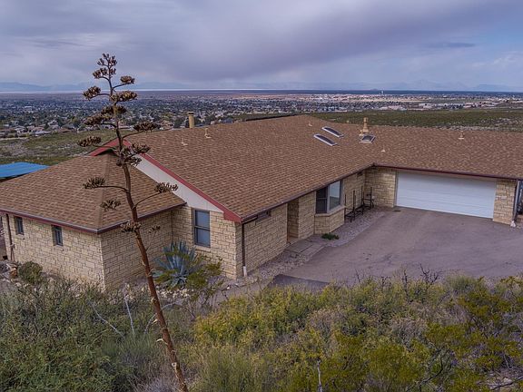 Updated custom built single level home with amazing views of Alamogordo and White Sands on almost 2 acres bordering National Forest! This 3 bedroom, 2 bath open floorplan 2,244 square foot home has been updated with new flooring, paint, fixtures and an added bonus room/office with views of the Space Museum out your window. Enjoy the sunsets on the partially covered back deck or landscaped back yard facing the city. Features a large 2 car garage, new septic system (installed in 2021), updated HVAC system/plumbing, owned solar panels, and has bonus basement space below the home for additional storage. Feel like your on top of the world but only minutes away from all Alamogordo has to offer in this unique, move-in ready home. Owner/broker.