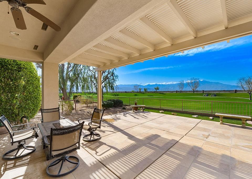 This EXCEPTIONAL property in Sun City Palm Desert, Del Webb's premier 55+ community for Active Adults in Palm Desert, CA, features the popular MOROCCO floor plan with a DETACHED GUEST CASITA and outstanding PANORAMIC FAIRWAY & MOUNTAIN VIEWS!! Loaded with upgrades, this home is being OFFERED TURNKEY FURNISHED, including the GOLF CART and has OWNED SOLAR! The interior is light and bright, has an open-concept design and easy flow for indoor-outdoor entertaining, Three (3) spacious bedrooms and 3 full baths are all nicely separated for privacy and there's an additional Den/Office with views onto the Fairway. The spacious front COURTYARD is gated and covered and offers another private gathering area for lounging or entertaining guests. Other upgraded features include...NO CARPET, all hard-surface tile throughout, surround sound speakers, STAINLESS STEEL APPLIANCES, granite countertop in the Owner's Suite bath, CUSTOM PAINT, built-in shelves, designer window treatments, and the EXTENDED GARAGE has epoxy floors with both overhead and wall storage. The interior was PROFESSIONALLY DESIGNED and modified to include larger picture windows across the GREAT ROOM which creates more natural light and an exceptional view of the beautiful snow-capped mountains in the distance. This home is MOVE-IN READY for your winter enjoyment. NOTE: Buyer must pay a one-time Reserve Replenishment Assessment equal to 6 months HOA dues at Close of Escrow or within 9 months after Closing.