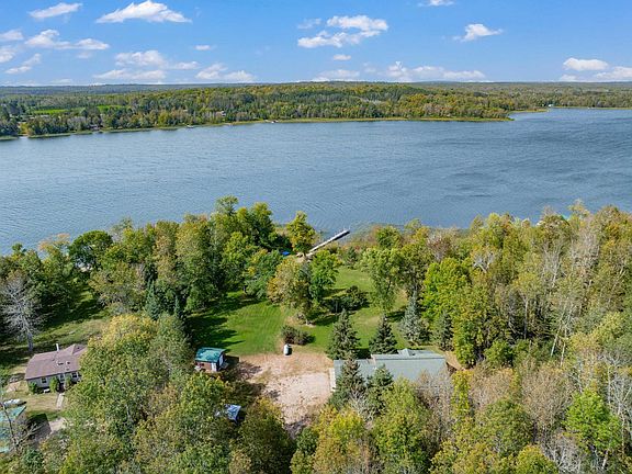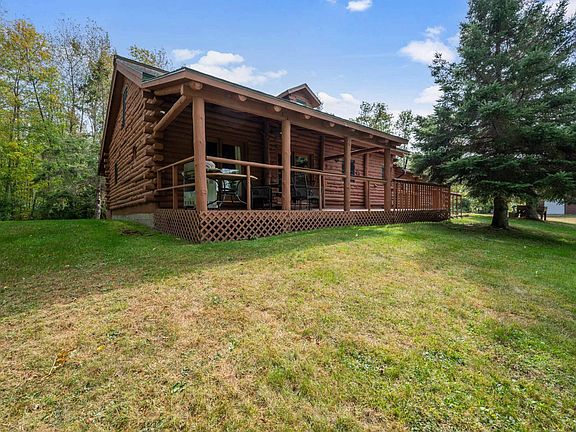 Nestled amongst the pines with approximately 315 feet of shoreline on Hill Lake, resides this 3 bedroom, 3 bath home. The authentic log construction has been well-maintained from the inside, out and exudes rustic charm. An open concept main level features hickory kitchen cabinets, a large island, and gateway to a lakeside deck. The primary suite includes its own 0.75 bath and direct access to the porch with west-facing views. Each end of the upper level catwalk is anchored by a loft-style bedroom, making the architecture a true focal point. The attached garage is complete with epoxy flooring and offers great flexibility for an additional space to entertain or simply keep vehicles from the winter temperatures. To include nearly 4 acres, the property embraces a large backyard with a level approach to the lake where you’re intrigued to cast a line or kindle a campfire.