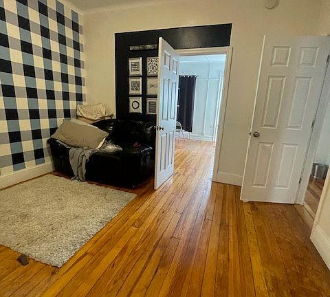 Spacious bedroomRailroad style unitHigh ceilingsSpacious open living-roomHardwood floorsMany windowsNew ss kitchen appliances