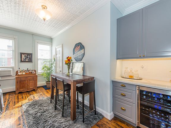 Welcome home to this gorgeous 1 bedroom + den with upgrades galore on a beautiful tree-lined street in historic Hamilton Park. This unit offers a sophisticated balance of modern renovations and historic charm. It features original hardwood floors, exposed brick, crown moldings, and a tin ceiling. The bright, modern kitchen has stunning white quartz countertops, soft-close floor-to-ceiling glossy cabinets, under-cabinet lighting, stainless steel appliances, a compact washer-dryer, and a cool, built-in wine refrigerator. The newly designed windowed bathroom features white marble, subway tile, and a glass walk-in shower. The open floor plan is flooded with light and designed to maximize space and flow, with a separate kitchen, living room, bonus den/office/dressing room, and a big, spacious master bedroom. The condo features enormous amounts of storage, including 4 custom closets plus a large coat closet. The unit has a landscaped, shared back yard, a large private storage room, and a basement washer/dryer. With Hamilton Park and Jones Park 2-blocks away, nearby bars and restaurants, and Grove Street entertainment and the PATH train a quick 12 minute walk, this home offers exceptional location, style, comfort and value. Open house Sat 10/6 1-3:30 & Sun 10/7 1-3:30