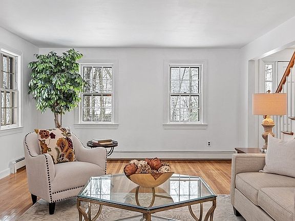 A nature lover’s delight! Move right in to this serenely situated 4 bedroom country home sited on 3.3 lovely acres in sought after Carlisle. Overlooking a lightly wooded perimeter with access to Malcom Meadows conservation land and nearby to Estabrook Woods provides miles of hiking trails and nature to enjoy year-round! Filled with natural light and featuring hardwood floors throughout, the 1st floor opens to the expansive front-to-back fireplaced living room. A spacious dining room awaits all the family celebrations while adjacent is a home office space with double windows. The eat-in kitchen boasts scenic property views and opens to an adjoining family room creating a great gathering space with sliders that step out to the private backyard. Upstairs finds a primary BR with double closets and en-suite bath plus 3 family BRs and a full bath with double sinks. Lots of potential and storage in the unfinished basement. Bring your design and decorating ideas and make this one your own!