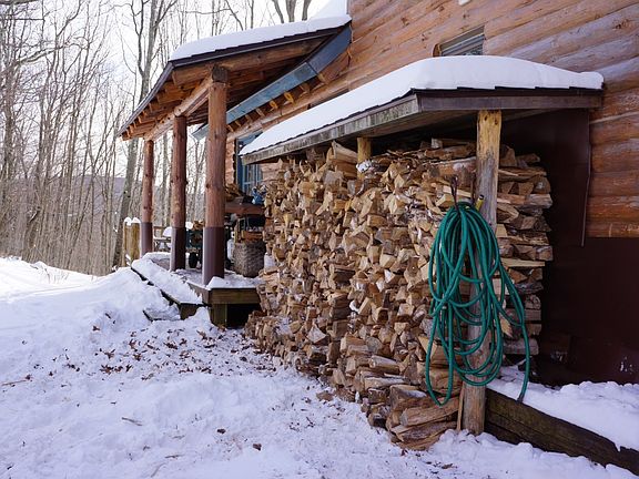 Imagine you're living in the Catskills in a classic, custom built log home on a quiet dead-end road with a 1/2 mile private driveway. This home retreat is set on 56 very private acres surrounded by state land engulfing you with comfort and warmth entering this oasis. The open floor plan has 3 sets of French doors, a stone hearth set wood stove, & vaulted ceilings, providing open & ample space for entertaining. Stepping out the front doors to the wrap around porch/deck, & enchantment continues to a view over your 2 ponds & serene views of the Catskills. There is a 1st floor bedroom with full bath including a laundry closet and a cedar sauna/shower room. On the 2nd floor, a den loft overlooking the 1st floor, 2 more bedrooms, a sleeping loft, and a full bath with a charming claw foot tub The full walkout basement with family/game room, another sleeping alcove & a full bathroom with a steam shower. Walkout from there into the yard & you'll find NYS hiking trails. Walkout from there into the yard and you'll find multiple NYS hiking trails. Whether you're into hiking, hunting, fishing, or cross country skiing, this property has it all. And, so near to ski slopes, golf courses, a fine restaurants -- all that the Catskill Mountains have to offer -- and just 2.5 hours from NYC!