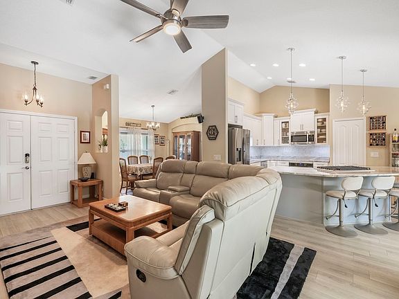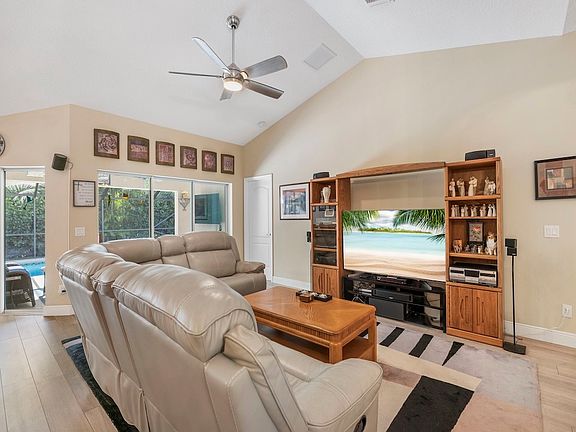 This Custom built Ameron may very well be located in one of the most charming neighborhoods in the Highlands...Winding Country Road leads you Home! Just 1 mi. to the IR & all it affords; Welcoming Lg Fr Porch -Custom Pavered DW/Sidewalk/Entry. LVP flooring thru-out. Expansive gorgeous Kit island w/Quartz counters/Marble backsplash - 2 Sliders lead to cust Salt Pool. Gas Cook Top/Gas Tankless Hot Water Htr. Appealing Plantation Shutters; Retractable Central Vac-Sys. Custom CA Closets in Primary BR w/French Doors leading to Spacious Lanai/Pool/Private Oasis area; Rear Buffer Hedges Round it Out!