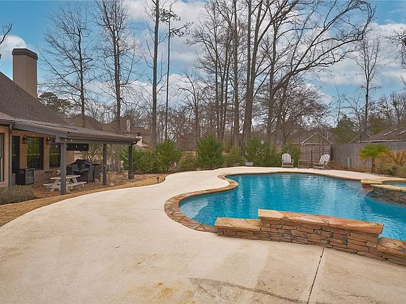 This charming custom built 4 bedroom, 3.5 bath home is located in the highly sought White Oaks Subdivision. As you enter through the stunning double front doors, you step into an oversized foyer featuring 10 foot ceilings and gorgeous travertine tile floors. Entertaining will be a pleasure in this attractive kitchen highlighting custom, soft close cabinetry and a delightful butler's pantry adjacent to the large dining space. In the open living area, you are met with an impressive fire place and custom built ins. The serene main floor primary includes a sizable custom walk in closet and separate tub and shower. The three other bedrooms located on the second floor for privacy are rich with ample closet space and ready for your decorative touch. As you step outside, you are met with a spectacular backyard oasis including a flagstone patio and a stunning heated salt water pool with built in hot tub that is perfect for entertaining friends and family.