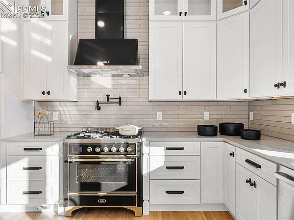 The warmth of Old-World architecture meets the simplicity of modern luxury in the custom Montecito by Stone Cottage Homes. One of six properties in the enclave at Bergamo Estates, this home is an immersive experience where the boundaries between indoors and outdoors disappear. Step into a formal receiving area where rounded walls and marble tile floors set a tone of sophistication. The heart of the home is an expansive living and dining space featuring wide-plank Oak wood floors, a gas fireplace, built-in alcoves, and exposed wood beams. Retractable glass doors open the entire southwest wall to a private yard with an outdoor kitchen and lounging area perfect for year-round enjoyment of Colorado’s weather. The magnificent chef’s kitchen boasts luxury appliances like the ILVE Majestic gas range imported from Italy along with an oversized island with granite countertops, glass tile backsplash, large sink with matching retractable window, walk-in pantry, wine cellar, and a beverage center. Continue to the primary suite, where sweeping mountain views greet you each morning from the plethora of windows and second entrance to the back patio. The spa-like en suite bathroom features heated tile floors, a soaking tub, a heated towel rack, and dual vanities, while a spacious walk-in closet offers room for a dressing area. A dedicated office finishes the main level with a focused area for you to work or create. The upper level follows an extra wide staircase and opens to a spacious family room with a charming Juliette balcony, adaptable as a game room or exercise space. The stone turret provides a touch of drama usable to display artwork, for a grand piano or as a meditation retreat. Two additional suites and a third bedroom complete this level. Situated along Bear Creek, this home provides unparalleled access to the best mountain biking and hiking trails in the city and is the one you’ve been waiting for; where tradition meets novel and where breathtaking views abound.