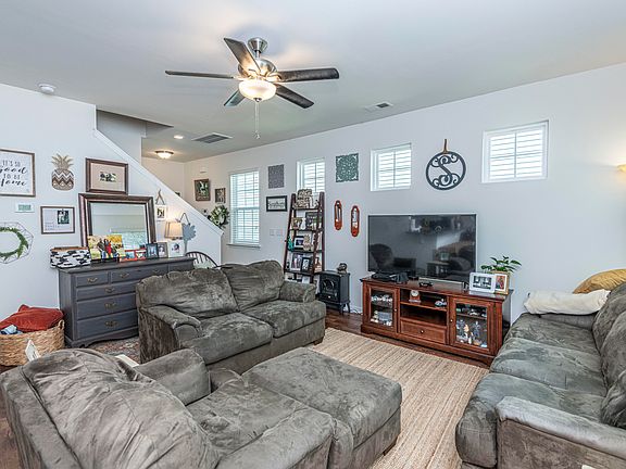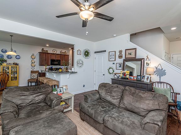 This home is ready to go! This home was just built in 2017 and has been lovingly enjoyed since then! Nestled in Moss Grove Plantation near Moncks Corner, this home is a prize! Upon entry you'll love the hardwood floors that run through the downstairs. This is an open floor plan with the kitchen overlooking the dine in area and living room. The kitchen is showcased with beautiful grey granite counters! Downstairs is a convenient half bath for guests. You'll love to entertain in this back yard that is perfectly shaded and has a large patio. Upstairs you'll find the large master bedroom with en suite bath complete with double sink, bath, walk in shower and large master closet. Upstairs there is also a convenient nook perfect for a home office. There are also 2 bedrooms, split by a bathroom.