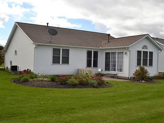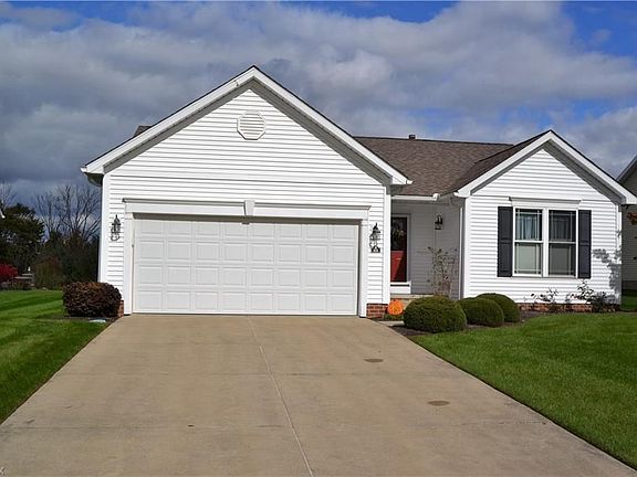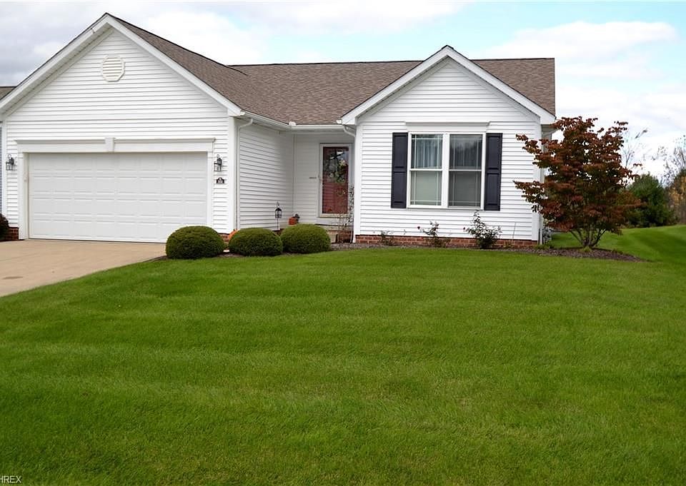 Very nice and well maintained two bedroom and two bath villa in North Canton with easy access to everything. Beautiful combination fireplaced Great Room and Dining Room, spacious Master Bedroom with Master Bath with tub, shower and double sinks. The bath near the second bedroom has a newer walk-in shower (2014). Beautiful Sun Room surrounded by windows which walks out to a large patio area overlooking a breathtaking view of gorgeous yard and wooded land in the back. Kitchen has newer Cambria quartz counter tops (2014), dishwasher (2014), newer kitchen faucet ( 2014); in addition to dining area. First floor laundry room directly off the kitchen which leads to the double garage with new flooring comparable to Nature Stone ( 2015). The basement is unfinished with glass block windows, and plenty of room for storage, or to finish if so desired. Other special features and updates include: Wayne Dalton garage door ( 2009), newer roof shingles ( 2011), Pella windows ( 2013), Trane furnace with humidifier ( 2014), water heater ( 2015), newer carpet (2015), and security system. Wonderful location close to Walsh University, Gervasi, Washington Square, and Stark Parks walking and bike paths. Mowing and snow removal is what the HOA fee covers a month ($110.00). Possession on or before February 15, 2019, but sooner if possible.