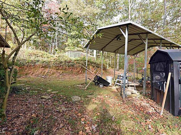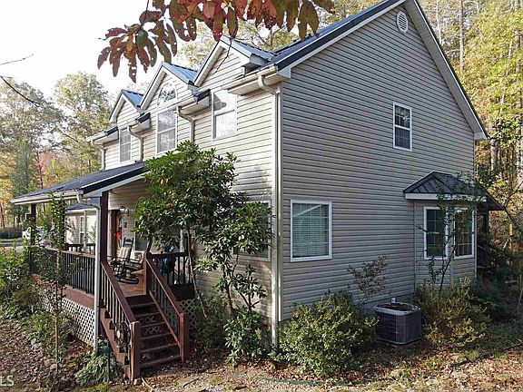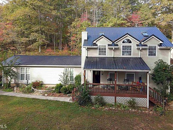 Delightful home with VIEW OF TOCCOA RIVER! On 1.59 acres, this charming residence sits just outside of Blue Ridge, within 5 minutes to Downtown and right across from the road from the Toccoa golf course. Sizable Primary bedroom on main level with bathroom boasts large soaking tub and separate shower stall. Airy living area, separate dining room, eat in kitchen area, stainless steel appliances in the kitchen, laundry, full second bath; hardwoods and wooden beam accents throughout the home. Two bedrooms and full bathrooms on second level. Screened in porch, fenced in area for furry companion, and nice deck overlooking your above ground pool!