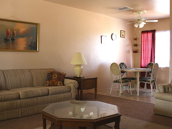 You'll enjoy this 3BD/1BA home's closeness to the Plaza and local schools! Covered open porch to sit out on and enjoy winter's warm sun. Furnishings and appliances included in sale.
