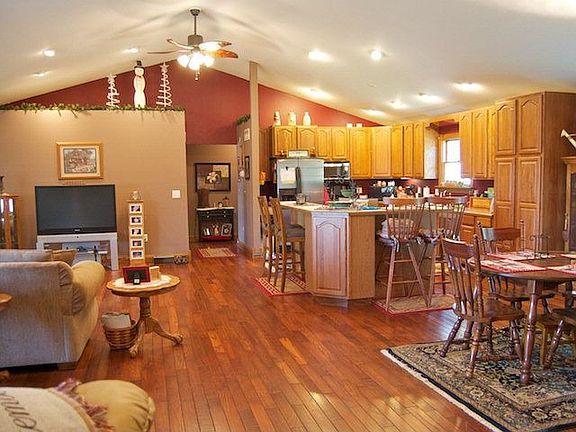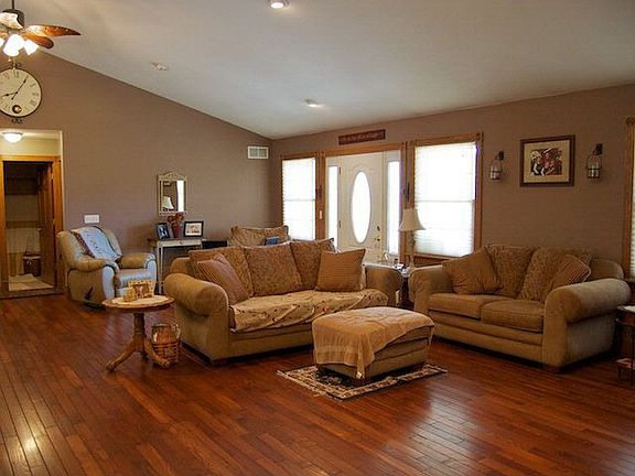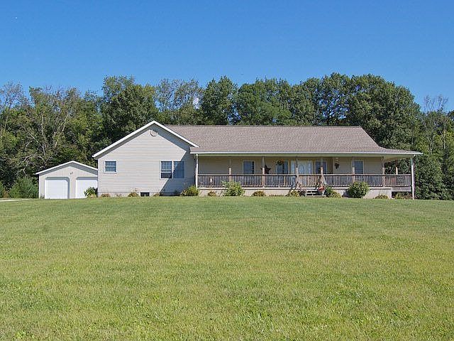Extremely nice newer home! Three bedrooms, 2.5 baths, 2,100 sq. ft. on 12.4 +/- acres. Open floor plan with a walkout basement. Hardwood floors throughout. Stainless steel appliances. Convenient one floor living! 32 x 40 pole barn with 2 12-foot overhead garage doors and electric.