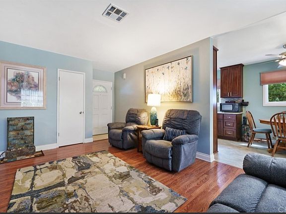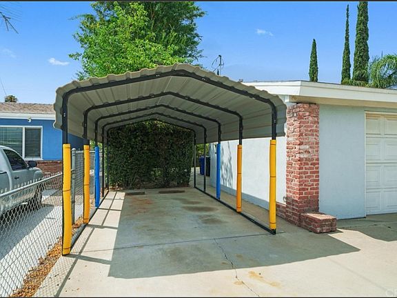 There are 3.5 bedrooms with laminate flooring, ceiling fans, extra deep closets with mirrored doors. The bathroom has been remodeled with custom cabinetry, modern lighting & fixtures, tile flooring & extra cabinet storage. Just outside the spacious living area is a patio area. The property has lots of mature landscaping as well as automatic sprinklers front & back. The lot is large enough for the kids to play, put in a pool in and it is completely fenced. House has Dual pane windows, window coverings, central heat & air conditioning, updated plumbing & electrical panel, ceiling fans in bedrooms & eating area. Also an enclosing carport to create a single-car storage. Garage has washer/dryer hookups. Close to the freeway, downtown Rialto & walking distance to Boyd Elementary Renter is responsible for utilities.