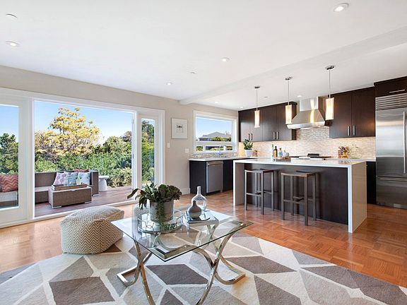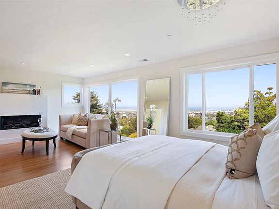Its striking contemporary design, gorgeous finishes and exceptional construction quality scream sophistication and elegance! This exquisitely modern design home is situated in the heart of Millbrae and is crafted with clean lines showcasing fine finishes, high quality fixtures and appliances. High end hardwood floors and recessed lights throughout. The main level features open living and dining spaces. Enjoy the breathtaking view on the deck which connects to the main living room. Also features a magnificent, fully equipped kitchen which features custom cabinets, Wolf stove, Subzero fridge, marble island with a built in U-Line beverage cooler and pendant lighting...a chef's dream come through! The upper level features a dramatic master suite complete with a view, gas fireplace, spacious walk-in closet and a spa-like shower and bathtub with glass doors. Also consists of two elaborate sized bedrooms with a full bath in between and a laundry room. The lower level features a den or a fourth bedroom with a full bath, powder room, a wine cellar and a two-car garage with enormous space for storage. The large landscaped garden is ready-made for entertaining! The 'edible garden' is filled with grape, kumquat, apple, persimmon and lemon trees and a vegetable garden!
