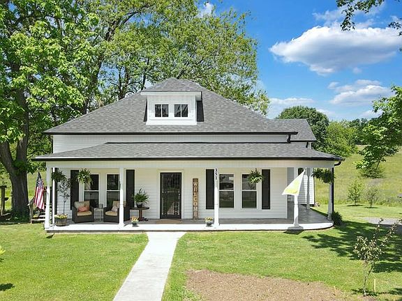 This is your dream vintage farmhouse nestled on a beautiful open lot! Definitely a MUST SEE! Step onto the front porch and through the front door into a open living room with a original wood burning fireplace. Kitchen has been newly remodeled with granite countertops and updated cabinets. You'll love cooking in this kitchen with double ovens and an island workspace. The primary bedroom has double windows with a great view of the backyard area. The other two bedrooms are spacious and ready to entertain your guests or give plenty of space for your family. Fully updated bathroom with shower/tub combination. Step outside to the back of the home onto the spacious deck. Plenty of space for entertaining with a patio set and grill. Relax on the back deck with views of the small pond and garden spot. Call listing office for a showing appointment today because this one will go fast!