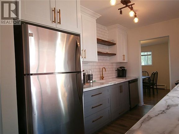 Looking for a little Devon heaven? Single level living? First timer or downsizer? This charming 3 bedroom nest is the one for you! Low maintenance stylish laminate flows through the bright main living areas and bedrooms. Barn door separates the walk through closet with beautiful laundry space and principal bedroom. Second bedroom is large and sunny, bathroom is nicely updated. The galley kitchen is the show stopper with its designer touch ~ gray lowers and white uppers, modern brass fixtures, live edge wood shelving over the sink, high end appliances, large window and subway tile. Dining and third bedroom are off here as well as access to the basement. New electrical, energy efficient boiler, some windows, roof shingles and large backyard! Could this be your new home? (id:10402)