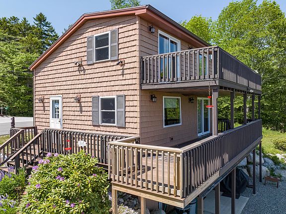 Spectacular views from this 2 bedroom salt box overlooking Graham Lake and extended views to three different mountain ranges including the Lead Mountain area to the left, the Schoodic and Spring River range in the middle and the MDI/Acadia mountains to the right. Watch storms roll in or the unobstructed night sky with no light interference with miles and miles of open views. Newer construction in 2013 with extra insulation 3 levels of living. The custom built home includes central vac, alarm system, gas heat and hot water on demand, oak flooring and granite counters with hickory cabinets. Oversized 28 x 40 garage with additional 920 sq ft finished upstairs for a pool room or could be additional bedrooms because of the oversized septic system. Comes mostly furnished