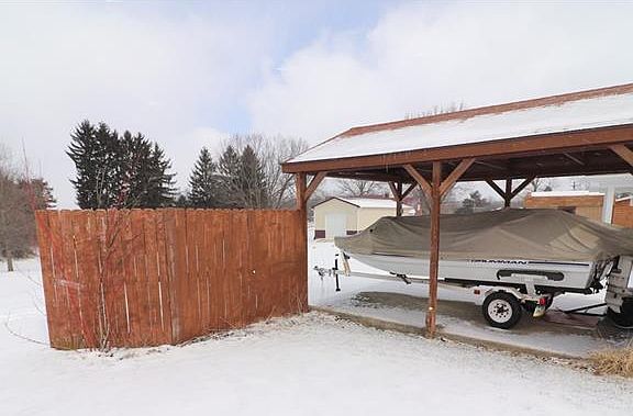 Close to Cranberry/Rtes 989 & 68, this RANCH features 3 beds, 1.5 baths, 2 car garage, extra parking for 5, & ONE ACRE LOT ideal for outbuildings/equipment storage. Built when craftsmanship was important, this home features ONE LEVEL LIVING, Low energy costs & REAL OAK FLOORING & HARDWOOD TRIM throughout. MAIN FLOOR: Kitchen professionally updated & features eat-in area & walk out to large Covered Patio overlooking beautiful/private back yard. Dining Rm & Living Rm enjoy an OPEN CONCEPT w/ larger picture window. Master Bed w/ DBL closet & fan/light, Beds 2 & 3 are nice sized rooms. Updated FULL Bath. LOWER LEVEL has nice-sized FAMILY ROOM w/ wood burner (not installed) & wood plank walls. Larger Laundry room includes full shower stall. Unfinished areas include workshop & an EXTRA ROOM readied to finish for Home Office or Playroom. OUTSIDE BONUSES include LARGE/PRIVATE BACK YARD, concrete storage pad w/ canopy, PLUS a large shed w/ ramp door. New roof. OGM rights convey to new buyers.