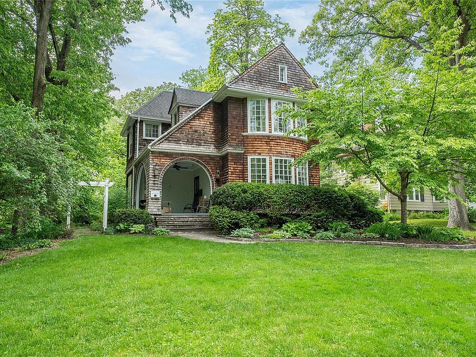 Est. 1903. This beautifully designed 3 bedroom, 2 bathroom cedar shake home in a desirable WG neighborhood will not disappoint. Gleaming hardwood floors throughout welcome you. The living room offers a cozy woodburning fp, bay window and built-ins. The butler's pantry, connecting the light-filled dining room and kitchen, provides additional storage and serving space, perfect for entertaining. The kitchen is a show stopper with stunning white cabinetry that complements the marble backsplash. Gorgeous custom hood and gas range. The huge family room with eating area opens out to the expansive patio overlooking the park-like grounds. The new full bath completes the 1st floor. Upstairs you'll find 3 generously-sized bedrooms and another updated full bath. New AC, HWH and electrical panel! An easy stroll away from enjoying the fantastic restaurants and shops that Old Webster has to offer. Walkable to neighborhood parks and schools.