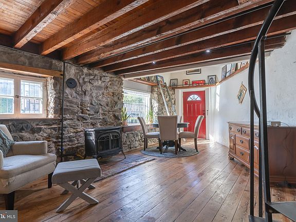 Here is your unique opportunity to own a part of West Chester Boro history. 351 Hannum Ave is the iconic triangle house with the historic “Wrigley’s Spearmint” mural, situated at the corner of Hannum and W Chestnut St. Jam-packed with classic character and style, this home features a spiral staircase that spans all three floors. There are stone walls, exposed wood beams, built-in bookshelves, barn doors, and stunning hardwood floors throughout. The lower-level kitchen and dining is fashioned in a classic style that seamlessly blends modern stainless steel appliances aside a cozy fireplace. The main living level features a powder room and a light-filled living room with a floor-to-ceiling built-in bookcase, and the upper-level features 2 bedrooms and a full bathroom which also conveniently houses the laundry. There is a dedicated storage space on the lowest level, and there’s also a 3rd floor trap door with a pulley system so that you can efficiently move furniture between floors. With the vibe of “loft-style” living right in the heart of the boro, you can be the next caretaker for one of West Chester’s most imaginative homes. Also known as the “flatiron building” which was once owned by local artist Dennis Haggerty, 351 Hannum Ave is one of those special places that truly deserves a personal visit. In Haggerty’s words, “Once again it becomes time to be introspective and ponder life and all its angles as we meet at the house on the triangle.” What do you say - shall we meet at the house on the triangle? Request a tour today!