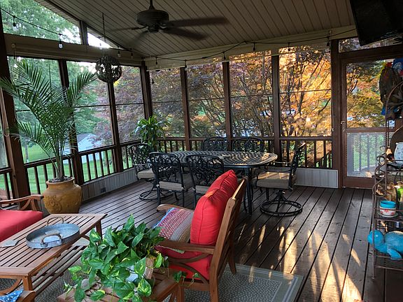 Beautiful ranch on 8/10 acre lot w/walkout basement. Large master suite w/private bath, guest bedroom and bathroom, open concept kitchen, dining and living room on main level. Large bedroom w/walk-in closet, bathroom, family room w/walk-out to patio, storage room w/shelves, and laundry room in basement. Large screened porch off kitchen. 2 car garage with built-in cabinets and 10 x 14 ft outbuilding in back. Open kitchen w/cherry cabinets and granite counter-tops.