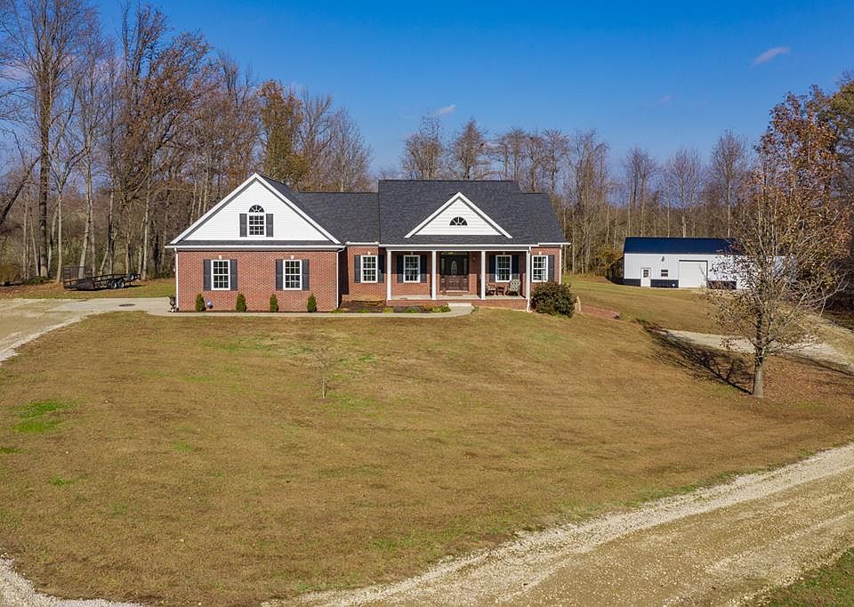 Wow...what a house!! This 3 year old custom built home is tucked away on almost 9 acres in Henderson, Co. Driving distances are; 20 minutes from Owensboro / 11 minutes from Henderson KY / 28 minutes from Newburgh, IN / 24 minutes from Evansville, IN. Key features include; Custom Amish Cabinets throughout, Granite tops, Hardwood and tile floors, Geothermal, Tankless water heater, Custom master bath, gigantic basement w/ full kitchen, 30' x 60' pole barn w/ 12' ceilings and concrete floor and much much more!