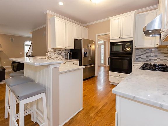 - Kitchen Features: Breakfast Bar, Eat-in Kitchen, Pantry, View to Family Room, Stone Counters, Cabinets White