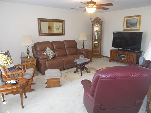 Immaculate ranch home on quiet side road close to town. Living room, family room, updated kitchen, porch on rear and side entrance on home to former beauty parlor that would great as office or man cave with its own 1/2 bath! Don't forget about the pole building and beautiful landscaping!!!