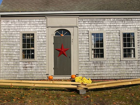 South facing antique three quarter Cape Circa 1800. On a large landscaped lot. Country charm with post and beam construction, exposed beams, 2 baths,3-4 bedrooms pumpkin wide pine floors, three working fireplaces, brand new Title V septic system and high efficiency boiler and tank less hot water heater. Other buildings include a 200 year old post & beam barn and 2 sheds. Own a piece of history! Enjoy being a country farmer. Fruit trees , grape arbor and all. Walk to the beach or mooring or toss your clubs over your shoulder and walk to two great courses. This spot has it all!!