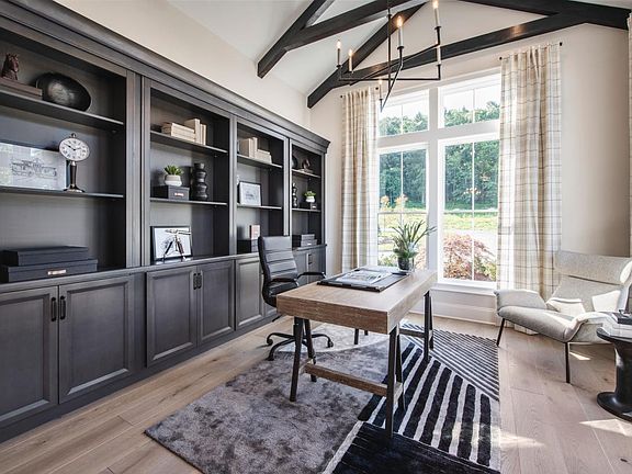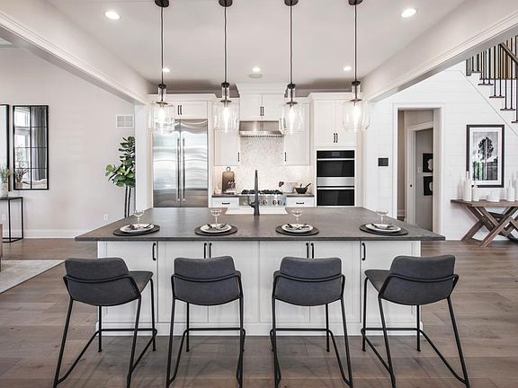 Deluxe design and style for this stunning end residence. The Avail's inviting covered porch and side entry opens into the impressive two-story foyer, revealing a charming flex room, the lovely two-story dining room, and views to the spacious great room with rear yard access beyond. The well-equipped gourmet kitchen is complete with a large center island with breakfast bar, plenty of counter and cabinet space, roomy dual pantries, and workspace. The beautiful primary bedroom suite is highlighted by dual walk-in closets and spa-like primary bath with dual-sink vanity, large luxe shower with seat, and private water closet. Central to a generous loft, second-floor secondary bedrooms feature walk-in closets and shared hall bath. Additional highlights of the first floor include a convenient powder room and everyday entry, centrally located laundry, and additional storage.