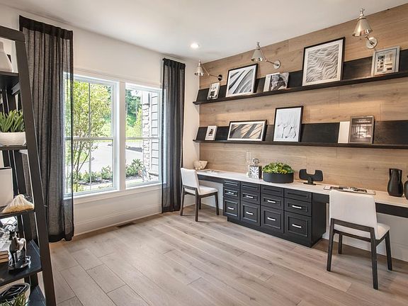 Well-appointed end residence townhome living. The Benefit's welcoming covered porch and entry flow into the stunning two-story foyer, revealing the beautiful two-story dining room and views to the spacious great room with rear yard access beyond. The well-designed gourmet kitchen is equipped with a large center island with breakfast bar, plenty of counter and cabinet space, desirable dual pantries, and included workspace. The elegant primary bedroom suite is complete with a large walk-in closet and spa-like primary bath with separate dual-sink vanities, large luxe shower with seat, and private water closet. Central to an enormous loft, secondary bedrooms feature walk-in closets and shared hall bath with dual-sink vanity. Additional highlights include a secluded flex room, convenient powder room and everyday entry, centrally located laundry, and additional storage.