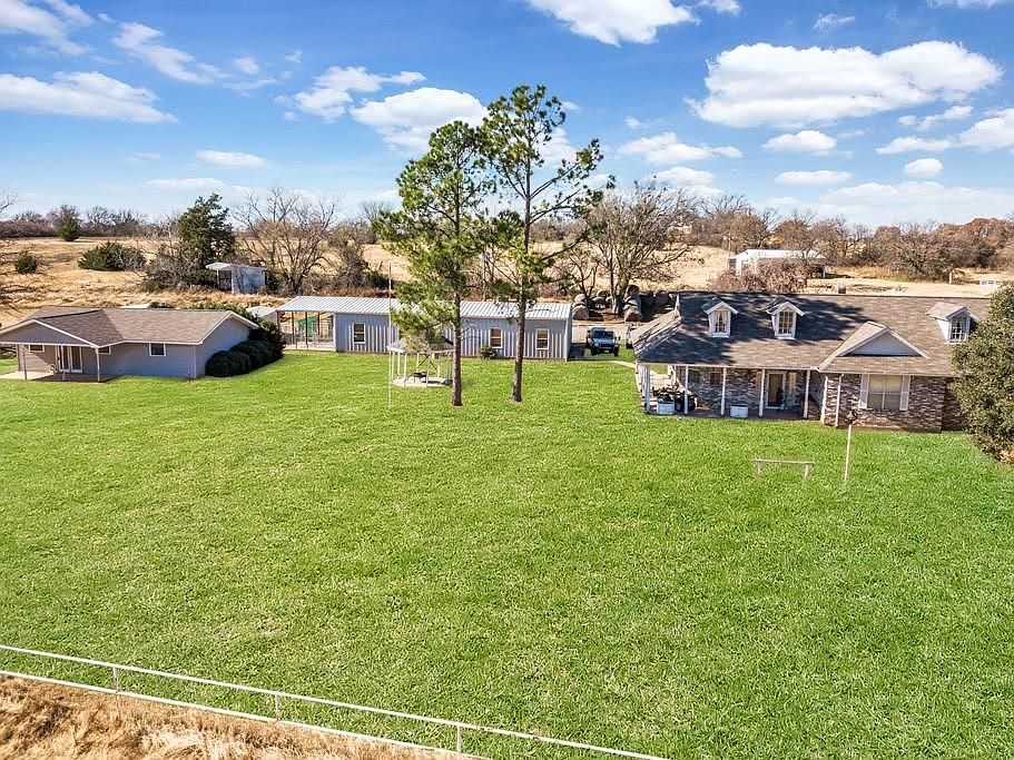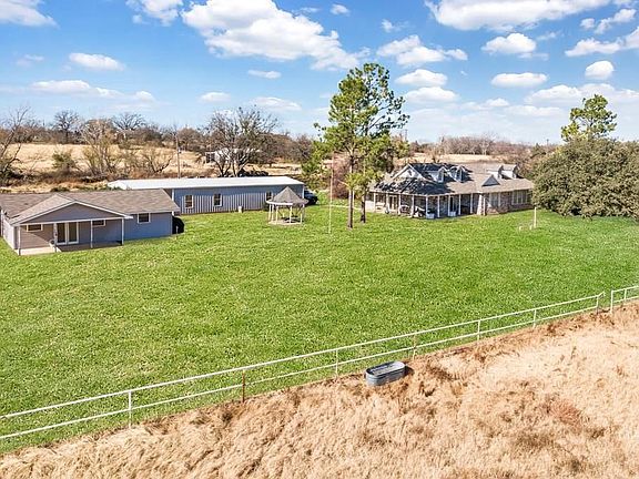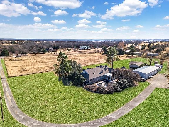 Bring your horses and enjoy country living at its best on this stunning Ag exempt 15 acre property with gated entrance that includes one story main house with diving pool and spa, separate trophy/game room/man cave, guest house; barns including horse barn with 3 wooden stalls with paddocks and attached hay barns, loafing sheds cedar tack room and plumbed office space, concrete paved floors with matts, wells, heated dog kennel with concrete floors and plumbed, storage area/shop and woven wire and pipe fenced bermuda grass pastures with ponds. One story custom brick main house feature 14' ceilings throughout, 4 bedrooms with plantation shutters and spacious closets, family room with floor to ceiling brick fireplace overlooking kitchen and dining area. Kitchen is complete with an abundance of custom cabinets, range, microwave, dishwasher and opens onto breakfast area. Utility room with custom cabinets and space for full size washer, dryer and freezer. Florida room makes a perfect 2nd living area and opens onto fenced backyard with pool, spa and patio. Separate 3 car garage includes attached man cave/game/trophy room and could double for private office with separate entrance. Guest home features full kitchen, family room, 2 bath, 2 bedrooms and covered porch. This lovely property awaits the family that enjoys wide open spaces with room for horses, cattle and pets! Don't miss it!