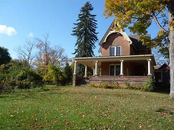 Own a piece of Webster History! This large 6 bedroom house built on 5.09 acres was constructed Circa.1860 by Charles Whiting, builder of "The White House" in Webster Park. He was the original owner of the property. The house was built in the Gothic Revival style with red brick exterior. The front and side porches with their ionic columns were added later between 1890 and 1910. The foundation is fieldstone. As the house was adjacent to Webster Park, it was the home of the park's first foreman.This house features Solar Electric ($21.45 per month)has a 2 car garage and has several out buildings.For more info or a FREE list of other homes in the area CALL 585-362-8515