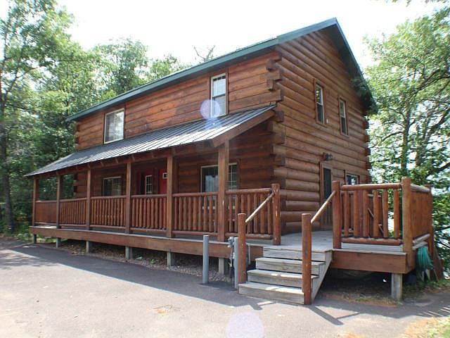 Brandy Lake Log home- Enjoy the views over Brandy Lake from your living room as you snuggle in front of your fireplace. The dining room also has a great view of the lake and just off the kitchen. The lower level has a large rec room with an easy walk out the sliding glass doors to the lake with a picnic area right on the shore. There is room for a lot of storage in the lower level as well. The upper level has all 3 bedrooms facing the lake. There is a kitchen and large living room as well - a full and complete extra living area. This could be made into a money making duplex or work out the one level and live in the other! There is a lot of room here in the house and with 175 feet of sandy shore on Brandy Lake, there is a lot of room at the shore. Call today for all the details.