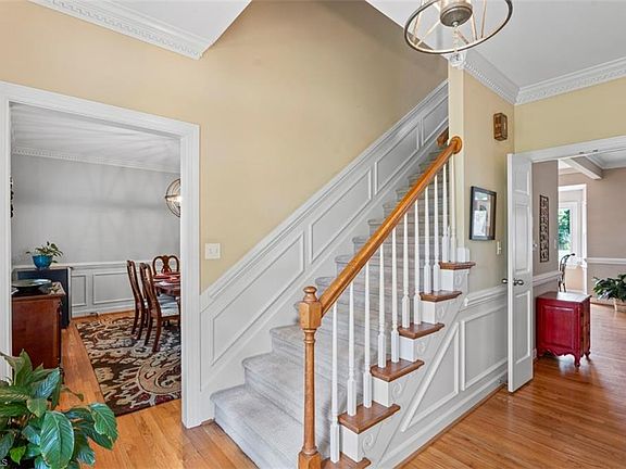 Move right in to this impeccably well kept home in BRCC! Classic brick traditional features an open eat-in kitchen to great room floorplan. Gorgeous brick fireplace, built-in shelves, hardwood floors & sunny French doors complete the main living space. Gourmet kitchen features stainless steel appliances, walk-in pantry, tile backsplash, under cabinet lighting, island, ample cabinetry & counterspace. Formal dining room is ideal for entertaining! Main level bedroom suite has 2 closets & private bath. Expansive Primary suite features renovated bath with tile shower, granite countertops, custom cabinetry w/linen closet, and an amazing built-in custom jewelry/laundry armoire! Spacious bonus room features second staircase! 2 car attached garage & one of the few homes in BRCC with an outdoor storage building! Ideal for storage and can accommodate a lawnmower or golf cart. .77 acre lot has a gorgeous view of #3 on the East Course. New roof 2023! This one is a MUST see! BRCC membership not rqd.