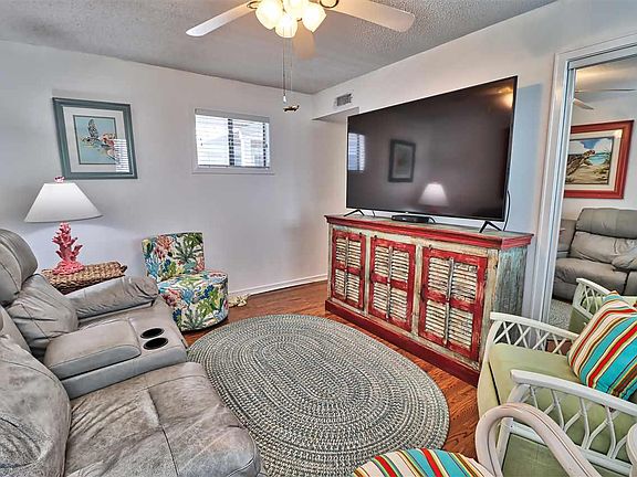 Ready to move! A quick walk to the beach and nestled in Arcadian Dunes on the ground floor, this well-maintained and updated two bedroom-two bath unit is truly a must see. Great for a 2nd home or vacation rental. New stainless steel appliances and granite countertops in kitchen. New LVT flooring. Enjoy your morning coffee on the cozy all season porch. Bathrooms both updated. Washer/Dryer convey. Arcadian Dunes has two private pools, jacuzzi, sauna, and their own bar & grill "Harry the Hats" on location. Owners allowed golf carts, motorcycles, and pets. Truly a short walk to the Apache Pier, the longest wooden pier on the East Coast. Centrally located to all shopping, entertaining and of course fine dining! Stop by and take a peek. Buyer and/or buyer's agent responsible for verifying square footage and HOA information.