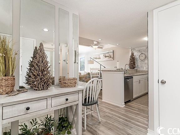 Walk to the beach from this stunning furnished 2 bed 2 bath condo located in the popular Arcadian Dunes community! Only used as a second home, this gorgeous unit is beautifully furnished and decorated with a true cottage feel and features LVP flooring, granite counters, new TV"s in the bedrooms, vaulted ceilings, and a profusion of windows that infuse the whole unit with wonderful natural light throughout. Open floor plan boasts an expansive living room with ceiling fan and direct access to the balcony and fantastic kitchen with stainless appliances, plenty of cabinet space, granite counters, recessed lighting, batten walls and a breakfast bar. The spacious master suite includes private access to the balcony and bath with vanity and tub/shower. The second bedroom is also nice sized, and the second bath has a vanity and shower. The balcony provides a peek of the Atlantic Ocean while you enjoy your morning coffee or kick back with your favorite beach read. In addition, this unit has ample closet space, a washer and dryer and 3M film was added to all the windows in July 2020. Arcadian Dunes has fabulous amenities including two pools, a playground, picnic area and grills, clubhouse with arcade and workout room, tennis court, and Harry the Hats onsite bar and grill. Great location close to Broadway at The Beach, Barefoot Landing, Arcadian Golf Course, dining, shopping, and all the entertainment and attractions Myrtle Beach and North Myrtle Beach have to offer plus you can walk to the beach, the Apache Pier and Ocean Annie's! Perfect as a primary home, vacation getaway or an investment property. If you have dreamed of having your own piece of paradise, don't miss this opportunity! Schedule your private showing today! This delightful condo is a must see!