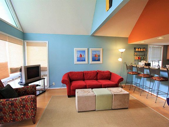 Are you looking for a well maintained, fully furnished end unit condo within one block of the beach? Well the search is over! This place has cathedral ceilings throughout and a loft in the 2nd bedroom to accommodate more bedding. The kitchen has maple cabinets, granite counters, a bar top with a tile backsplash, a deep undermount double stainless steel sink, Frigidaire Appliances and a digital display dishwasher. There is a large storage closet and a separate closet with shelving and a side by side washer and dryer. The bathrooms have tile floors, raised vanities and tasteful mirrors and lighting. The central heating and air conditioning system is a quality, Trane unit. There is screened porch to take in the ocean breeze under the trees. The amenities are fantastic! There are two pools, a tennis court, exercise room, picnic area with grills and a playground. Within walking distance of the beach, pier, ice cream shop and restaurants.