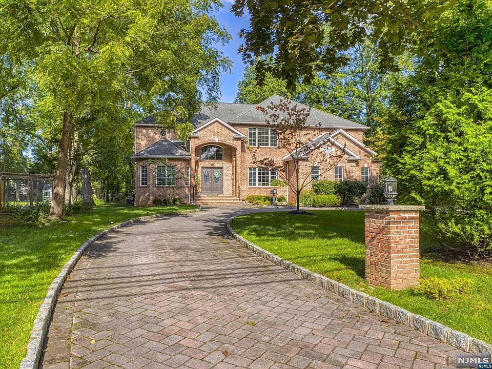 Convenient circular driveway leads you to this impressive, all brick home built in 2004. The first floor offers a welcoming layout with family room and fireplace leading to the renovated kitchen with center island with seating and breakfast nook. The first floor offers a possible 5th bedroom ideal for extended family. A private office or formal living room is ideal for every day living. The second floor has a HUGE master suite with tons of windows offering lots of light plus walk in closet and a renovated bath with jacuzzi. A junior suite with full bathroom, plus 2 additional large bedrooms and a modern bath complete this level. Huge finished basement with lots of possibilities has a gym, play room and full bathroom. Close to school, park, and NY transportation. Blue ribbon schools and new downtown nearby.