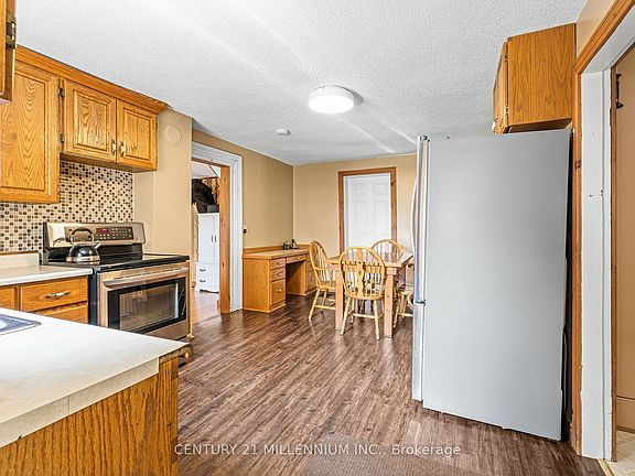 Welcome to 351 Main Street East, Dundalk, ON a charming family home featuring 2 bedrooms and an office/den, perfect for versatile living. The large in-town lot has tons of space and a detached garage/shop. The inviting kitchen boasts laminate floors, stainless steel appliances, a spacious dining area, and a built-in desk, with easy access to a side porch/mudroom, ideal for storage or extra sitting space. The family room, complete with a cozy fireplace, opens to a deck, providing a perfect spot for relaxation. A large living room offers access to the front porch, enhancing the home for a future usable space or an additional sitting area. Additionally, a generous laundry room with built-in cabinets adds to the convenience of this lovely home.