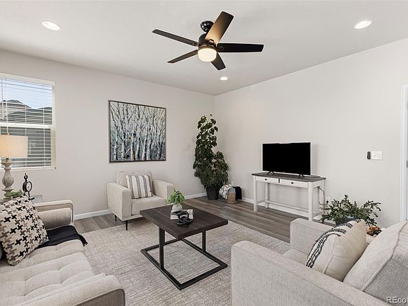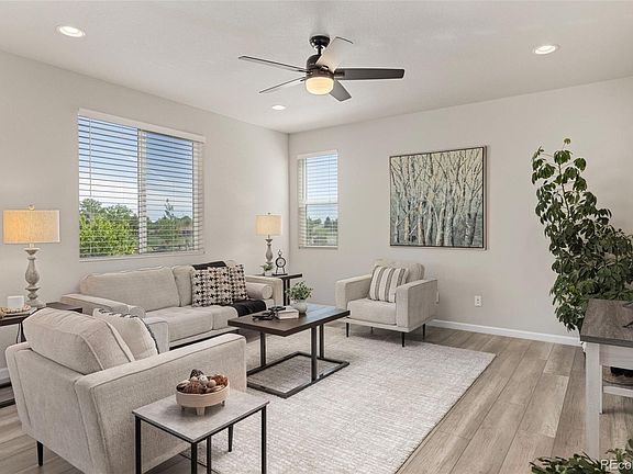 Stunning corner-lot home with mountain views, situated in a peaceful cul-de-sac in Erie. Boasting SMART home features throughout for modern convenience and comfort at every turn. The main floor includes a spacious bedroom and a full bath, ideal for guests or multi-generational living. The heart of the home is the light and bright kitchen, featuring a gas range, large pantry, island with seating, and eat space, perfect for casual meals and entertaining. The formal dining room provides an elegant space for special occasions. A main floor office offers a quiet retreat for work or study. Wood floors through the main living areas are durable and easy maintenance, plus provide a seamless spacious floor-plan. Upstairs, you'll find four generously sized bedrooms, ensuring ample space for everyone. The primary suite and secondary bedroom have mountain views. Upper level laundry with high end SMART washer and dryer add convenience and ease.