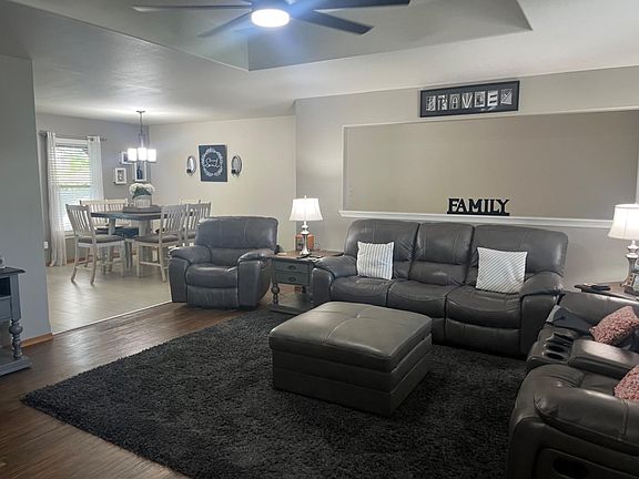This home is a must see if you are looking for a Move In Ready Property. The minute you walk in, you will feel at home. This unique property is unlike any in the neighborhood! Just imagine, there are Heated floors in the garage and in the basement. Enjoy the beautiful kitchen and nice size living room. You will love the up to date color palette and lighting upgrades. The current owners have added a shady covered patio that will be great for entertaining friends and family. Two nice bedrooms with walk in closets and 2 full baths on the main level. The basement has a Huge Den with surround sound, that is just perfect for having people over to watch the Big Game. But wait, there is a 2nd Master Bedroom with a Custom Built Master Closet with lots of built ins that will keep you organized. The 4th Bedroom has a large closet under the staircase. The basement bathroom has been finished with a large walk in shower. AC- 2023, Extra concrete plus a 2 car garage. Call Janie Rine 620-621-5025.