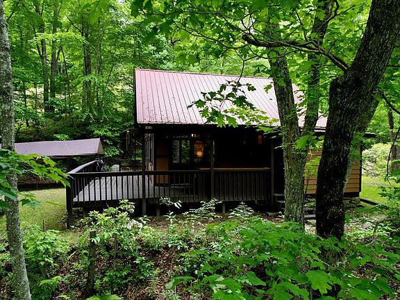 Listen to White Oak Creek roar from this Centrally located home in the heart of Nantahala- Minutes away from the Nantahala River and located less than 5 miles from Lake Nantahala! Quaint chalet with wrap around deck. Open floor plan wood burning fireplace in Great Room & bedroom and bath complete the main level. Upper Level has an additional sleeping area with a small sitting nook and an additional half bath. Price includes an additional lot than can be used to build another home or keep for added privacy.